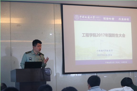 (通讯员:文新)4月28日上午,Beat365中文官方网站2017年国防生大会在工程楼418报告厅召开。院党委副书记江广长,校国防办主任李凛,驻校选培办干事谭皓,辅导员丁继国、文新、王俊以及学院全体国防生参加了大会。