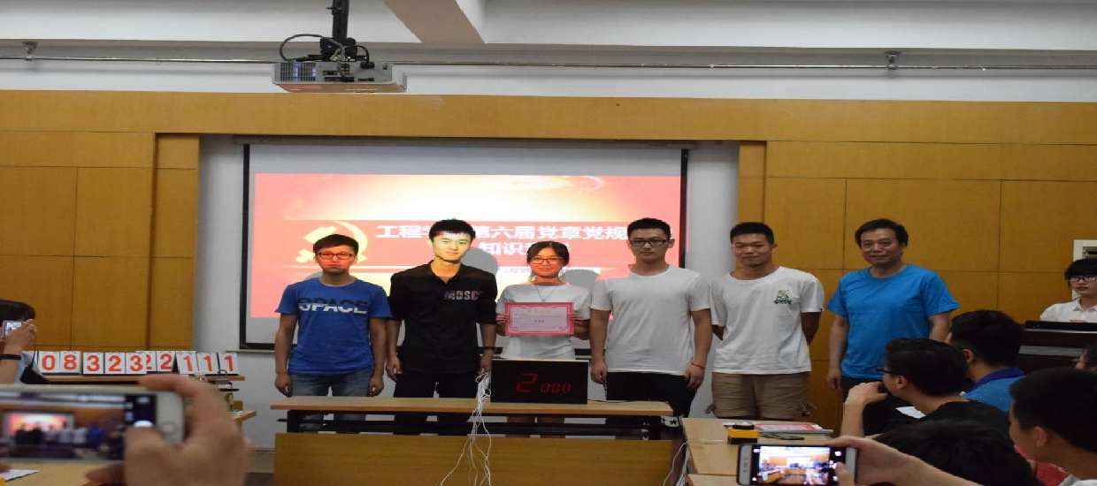 (通讯员:文新)2017年5月14日晚7点,Beat365中文官方网站第六届党章党规党史知识竞赛决赛在工程楼315报告厅举行,院党委书记陈飞,院党委副书记江广长,辅导员文新、王俊以及6支决赛队伍参加了比赛。