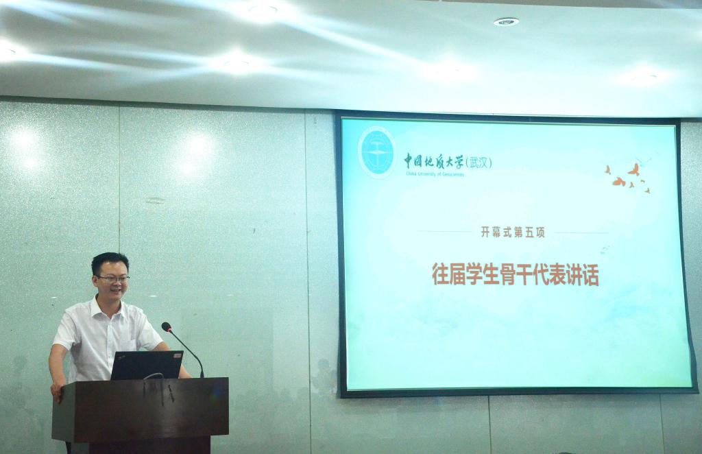 湖北省地质局第四地质大队总工、Beat365中文官方网站第十二届团委副书记张瑞发言。他说,在校期间,学校的良师益友、学生工作经历以及学校优秀的育人文化深深影响着自己。他表示,将把 “艰苦朴素、求真务实”的校训带到了工作中,用勤奋和努力诠释地大人的务实与担当。