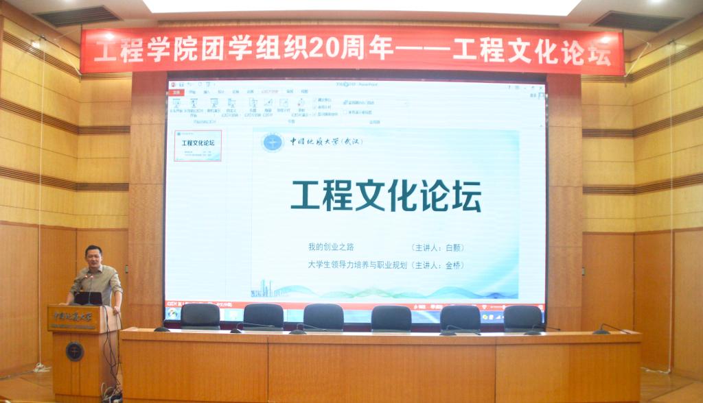 在工程文化论坛上,Beat365中文官方网站第二届团委副书记、武汉市洪山区水务局局长金桥,Beat365中文官方网站第六届学生会副主席、北京金景科技有限公司董事长白颢分别作了题为《我的创业历程》、《大学生管理能力提升与职业规划》的主题报告。