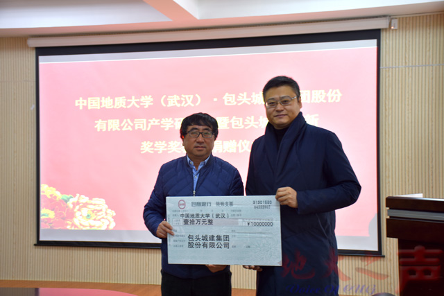 孙成、徐岩、陈飞签署三方捐赠协议。根据协议,包头城建集团再次捐赠10万元设立包头城建奖学奖教金。此前,该集团已捐赠20万元设立该奖学奖教金。徐岩接受捐赠支票,并向包头城建集团颁发捐赠证书。