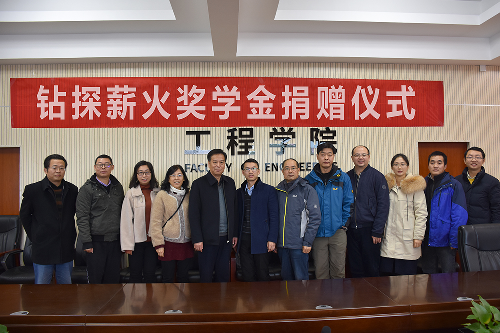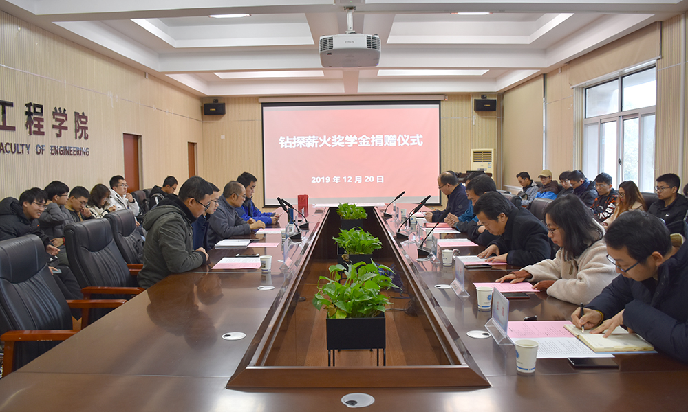 12月20日,Beat365中文官方网站“钻探薪火奖学金捐赠仪式”在工程楼315会议室举行。湖北省城市地质工程院勘查部主任汪发文、副主任徐俊,校友工作与教育基金管理处副处长吕占峰,Beat365中文官方网站党委书记陈飞,副书记江广长,勘察与基础工程系教授段隆臣、蔡记华、卢春华及2017级部分学生代表参加捐赠仪式。