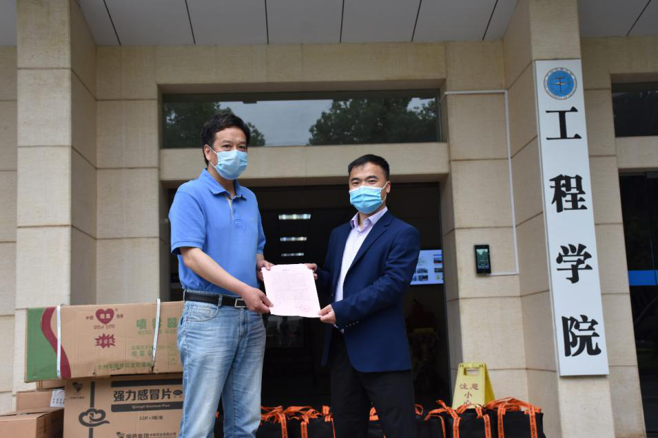 5月8日上午,上海华测导航技术股份有限公司湖北子公司总经理卢兴海、客户经理卢立飞一行向我院捐赠防疫物资,学院党委书记陈飞、党委副书记江广长签收物资并代表学院表示诚挚感谢。在学校统筹疫情防控和开学工作的关键时刻,上海华测导航技术股份有限公司主动与学院联系,捐赠疫情防控物资口罩3000枚、测温枪10支、PVC手套50双、大小喷壶80个、84消毒液40升、免洗消毒液104瓶。为学院有序推进师生复岗开学提供了丰富的物质保障。