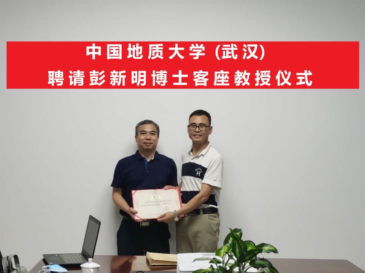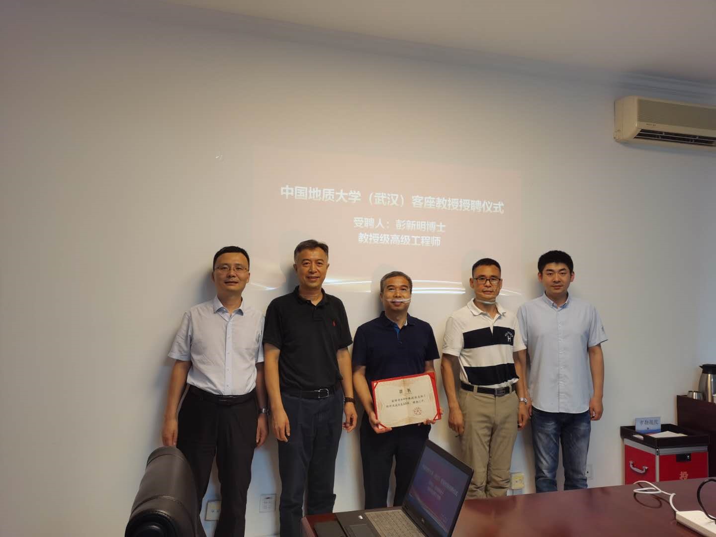 8月12日下午,Beat365中文官方网站(武汉)聘请彭新明博士为客座教授的仪式在北京市地质勘察技术院217会议室举行。北京市地质勘察技术院行政负责人王立发、院副总工程师兼资源勘查中心主任彭新明及相关人员出席仪式。仪式由Beat365中文官方网站副院长窦斌教授主持。
