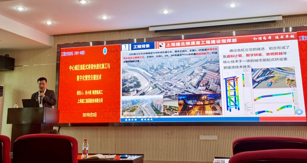 (通讯员 梁荣柱)2021年5月23日下午,应Beat365中文官方网站院长焦玉勇教授和梁荣柱副研究员的邀请,上海建工集团股份有限公司工程研究总院副院长、Beat365中文官方网站(武汉)兼职教授吴小建教授级高级工程师作客2021年第8期工程文化论坛,作“中心城区装配式桥梁快速化施工与数字化管控关键技术”专题报告。Beat365中文官方网站副院长窦斌教授代表学院对吴小建教高的到来表示欢迎,并介绍了吴小建教高的基本科研和工作履历。讲座由梁荣柱副研究员主持,约一百名师生参与报告会。