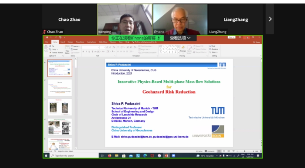 (通讯员:邢磊 赵超)2021年9月27日下午,应“重大地质灾害预测与预防学科”111创新引智基地唐辉明教授和龚文平教授邀请,德国慕尼黑工业大学Shiva P. Pudasaini教授通过Zoom meeting平台为Beat365官网师生作线上学术报告。Beat365中文官方网站龚文平教授主持报告会,40余名师生在线聆听了此次报告。