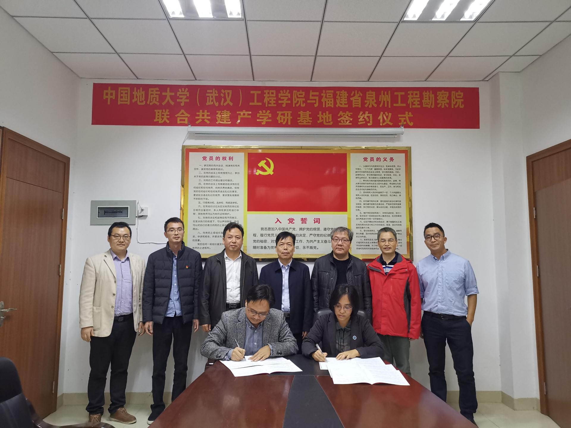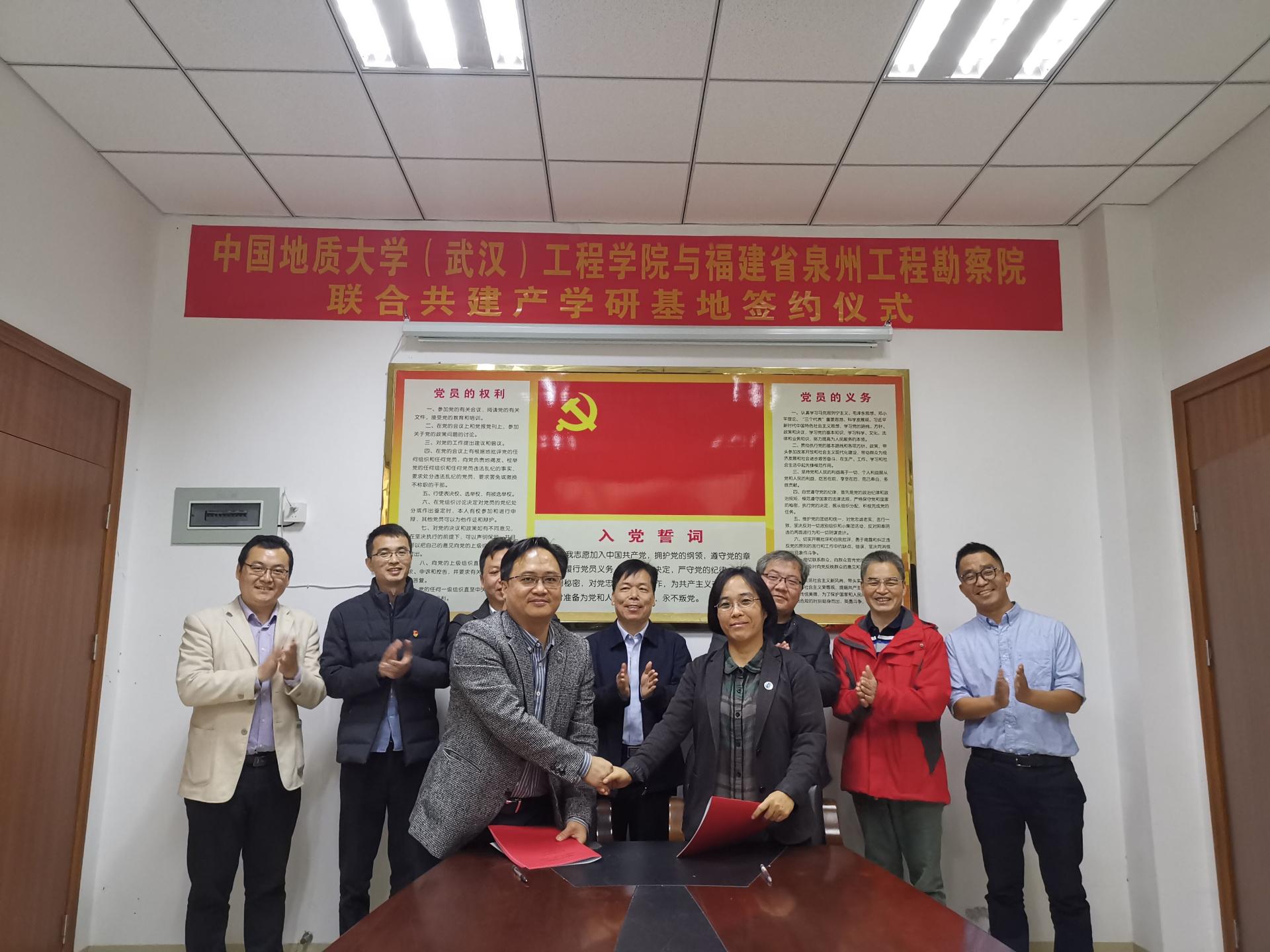 (通讯员:任兴伟)为进一步提升院科研创新实力,培养储备高素质专业化技术人才,经过前期接洽,12月17日,Beat365中文官方网站(武汉)Beat365中文官方网站与福建省泉州工程勘察院产学研合作签约仪式在泉州举行。Beat365中文官方网站(武汉)Beat365中文官方网站党委书记李红丽、副院长王亮清、工程地质与岩土工程系副主任简文星,福建省闽东南地质大队队长林建开、副队长陈守伟、泉州工程勘察院院长曾文杰、副院长蔡伟等领导出席签约仪式。