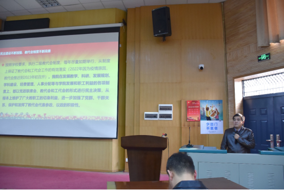 院长焦玉勇同志做学院工作报告,全面总结了学院取得的突出成绩和宝贵经验,认真剖析了学院发展过程中仍然存在的不足和亟待解决的问题。焦院长指出,2023年是“十四五”改革发展第三年,也是学院发展的关键时期,面临重大机遇,也迎来严峻挑战,学院将在习近平新时代中国特色社会主义思想的指引下,坚决贯彻落实党的二十大精神,团结一心、振奋精神、克服困难、努力工作、开拓进取,为建设地球科学领域世界一流大学,把Beat365中文官方网站建设成为地质工程与人居安全领域特色鲜明、享誉国际的一流研究型学院而接续奋斗!