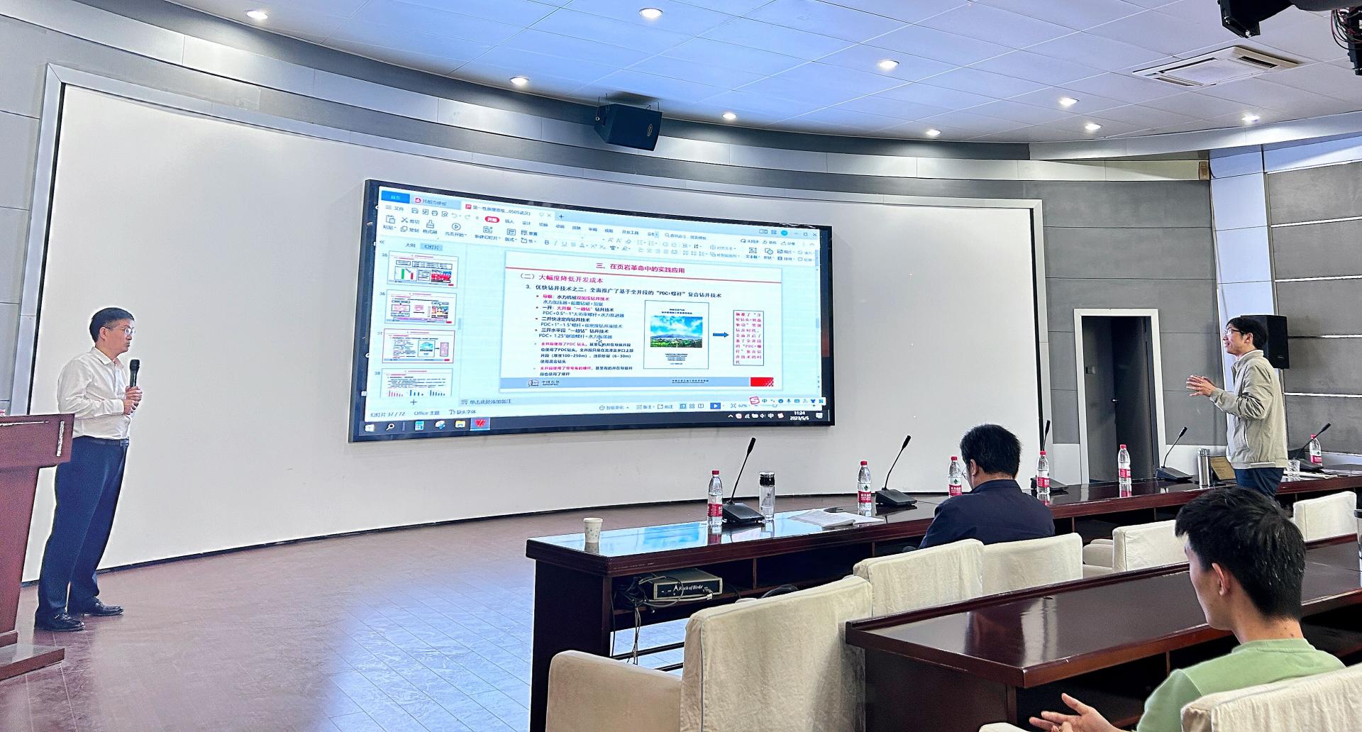 报告结束,参会师生对报告中谈到的“优快钻井技术之基于全井段PDC+螺杆钻具复合钻井技术”进行了深入交流,张金成教授勉励学生要不怕苦不怕累,扎实做好科研工作。段隆臣教授对此次报告会进行了总结发言。