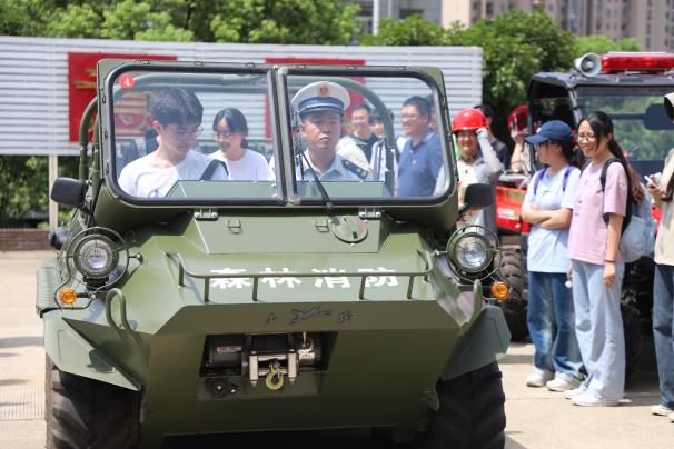 重温入党誓词后,055211和055212班全体学生在四大队消防官兵的指导下,开展了消防应急实习实训,四大队指战员带领师生参观了大队房宿、荣誉室,现场展示了部分先进消防装备的使用方法,指导学生开展了训练演习、消防设备实操训练、绳锁救援训练等活动。安全工程系教师与四大队指战员开展了消防技术和装备的交流和探讨。