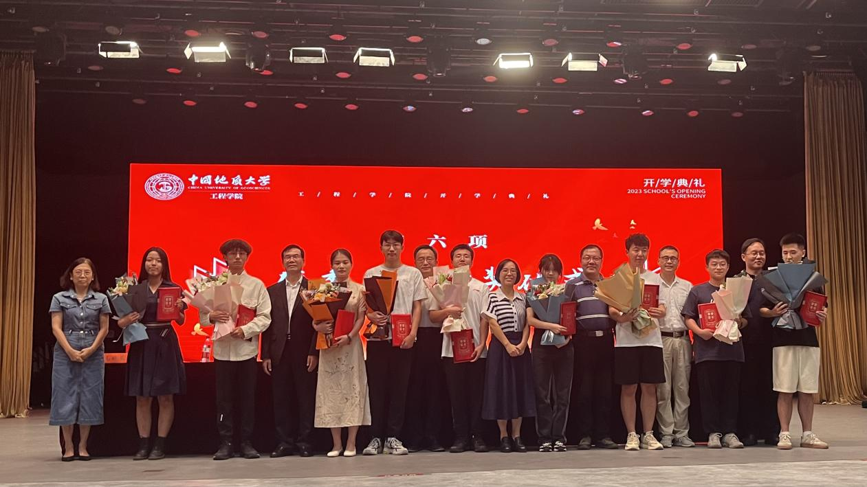 一个榜样就是一面旗帜。为营造“今天看榜样、明天学榜样、将来做榜样”的良好氛围,全体院领导与参会嘉宾为获得“Beat365中文官方网站本科生年度十佳人物”的翟丹阳、李昕、龚祝存、易应民、岳莉娅、李 疆、陈 城、黄灵慧、刘美辰、张文腾等10位本科生颁奖,为获得“Beat365中文官方网站研究生年度十佳人物”的公凯利、张云鹏、陈力博、薛 阳、李庆年、王崧贤、孔繁盛、栗志斌、贾彦平、田晓歌等10位研究生颁奖,为获得“地热知识竞赛”奖项的宇云飞、黄啟亮、李兆森、张佳乐、李泽诚、彭佳乐、张静、杨锴、朱丽等9位同学颁奖,用榜样的力量鼓励2023级全体新生心动起来、行动起来,奋斗起来、优秀起来,直至取得成功。