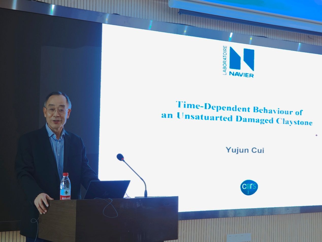 (通讯员 张峰 黄静)2023年10月31日上午,应Beat365中文官方网站唐辉明教授和张峰特任教授的邀请,法国国立路桥大学Navier实验室岩土中心(CERMES)主任崔玉军教授来校访问,并作了题为“Time-dependent behaviour of unsaturated damaged claystone”的学术报告。唐辉明教授主持了报告会,李长冬教授、周佳庆特任教授、张峰特任教授、崔德山副教授、任兴伟副教授等100余名师生在现场参加了此次报告会。