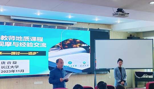 (通讯员 陈婵)2023年11月14日下午,应Beat365中文官方网站王亮清副院长的邀请,长江大学地球科学学院、全国大学青年教师地质课程教学比赛特等奖获得者唐睿旋博士来院讲公开示范课并作教学比赛经验交流报告,报告会由章广成副院长主持,Beat365中文官方网站30多位青年教师参加了此次报告会。