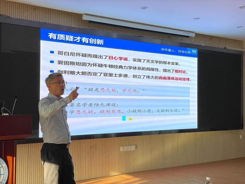 梅国雄教授作了题为“保持童心,持续创新”的学术报告,梅教授从自身科研经历和生活思考出发,通过多个典型的科研和生活密切联系的案例,讲述如何从直觉观察演化出创新突破的实践过程,并用生动形象的语言道破童心和创新之间的关系。通过介绍在固结排水边界、土压力与变形关系、桩基和抗浮、主动反渗防腐技术、柔性水域储油等多个研究课题中进行创新性研究的经历,给大家深刻的启发,最后建议与会师生“创新来源于生活的点滴发现,要保持童心,持续创新”。