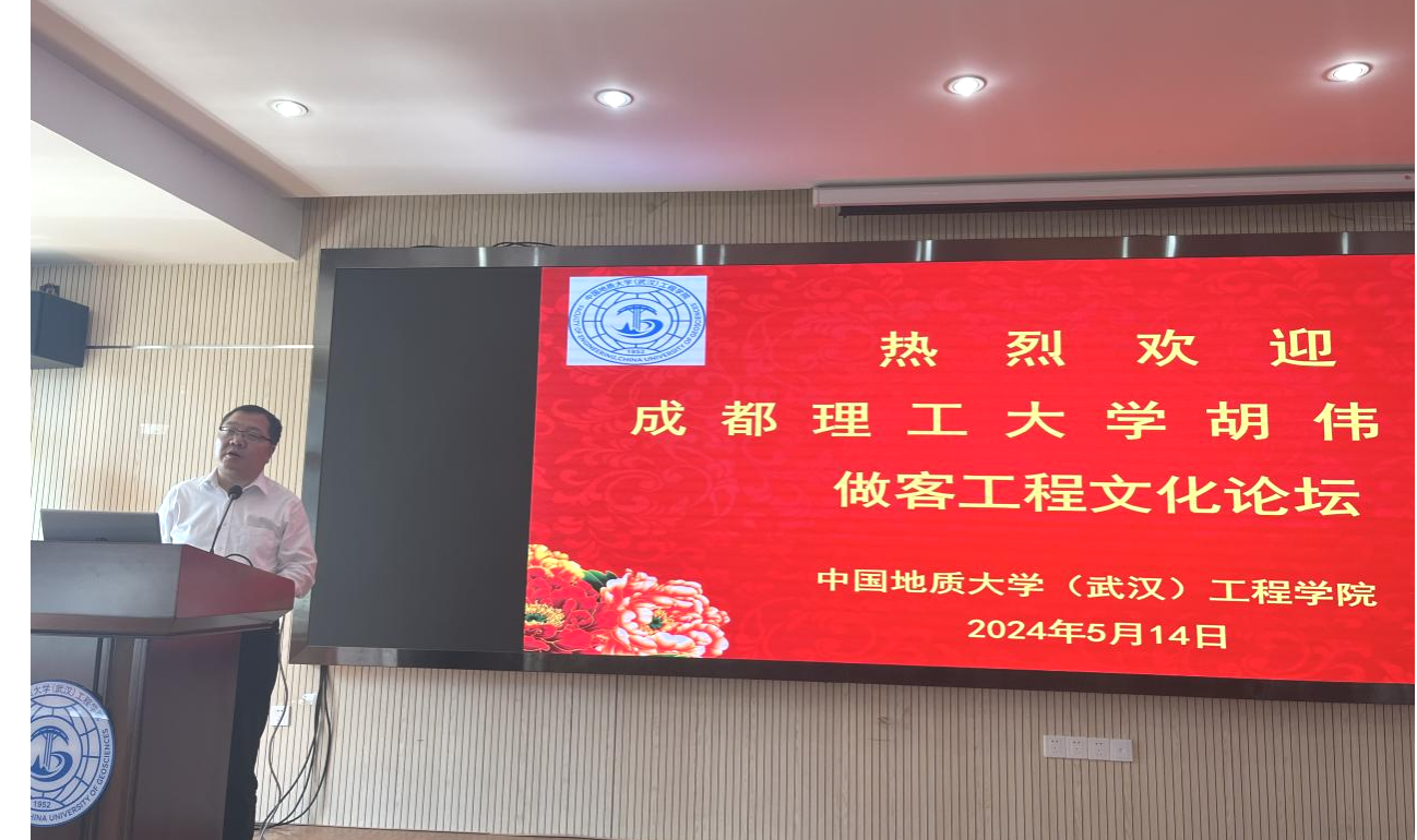(通讯员 刘智琪 黄静)2024年5月14日下午,应Beat365中文官方网站唐辉明教授的邀请,成都理工大学胡伟教授来校访问并做客工程文化论坛,Beat365中文官方网站副院长王亮清教授主持论坛,100余名师生聆听了讲座。