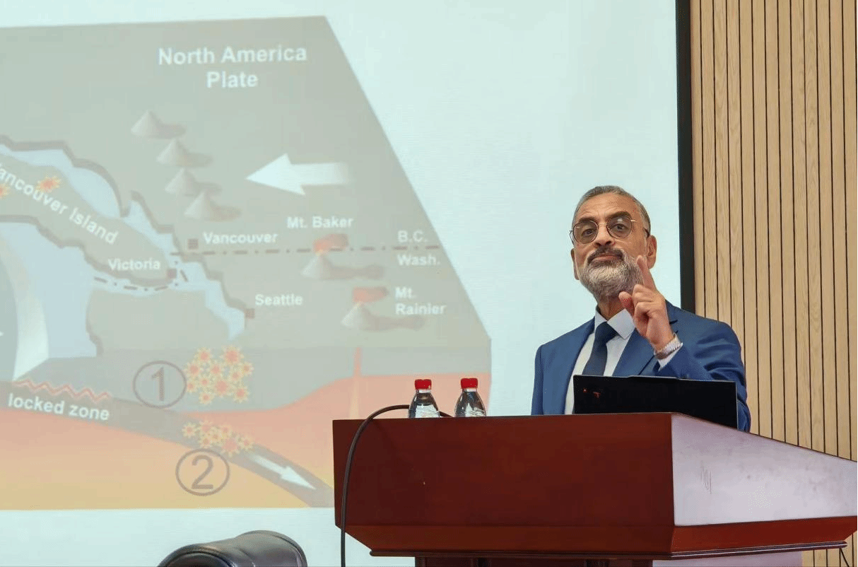 El Naggar教授的报告主题为“Regional seismic landslide mapping”,El Naggar教授围绕温哥华地区地震诱发滑坡灾害的概率性评估展开学术分享。他指出,地震导致的斜坡永久位移是滑坡灾害评估的关键指标,其计算综合考量了以斜坡屈服加速度为代表的一系列土体强度参数的影响。报告重点探讨了区域尺度地震位移预测模型的最新进展及多震源条件下滑坡诱发概率计算方法。El Naggar教授分享了西安大略大学的研究团队所建立的区域预测模型,并通过应用案例的详细说明了该模型的使用方法以及中国学者可如何改变该模型的部分结构以使其能够针对降雨后滑坡的发生概率进行预测。目前,该模型被用于为温哥华地区的各潜在滑动斜坡预测地震位移值,进而生成了该区域的地震滑坡灾害分布概率图。报告最后,El Naggar教授总结了该研究的关键成果,包括非侵入性测试组合方案、机器学习驱动的CPT-Vs模型,以及公开可用的区域Vs30数据库与场地放大系数地图,并提出应扩大被动源测试范围、融合LiDAR地形数据、推广机器学习在场地预测中的应用,并将所建模型纳入区域地震危险性分析的建议。