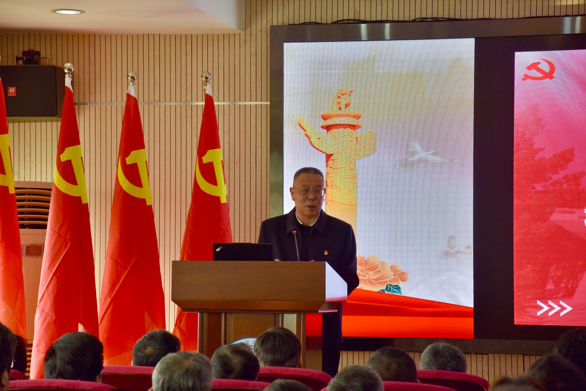 计票期间,杨昌锐围绕“教师师德师风建设”讲授专题党课。