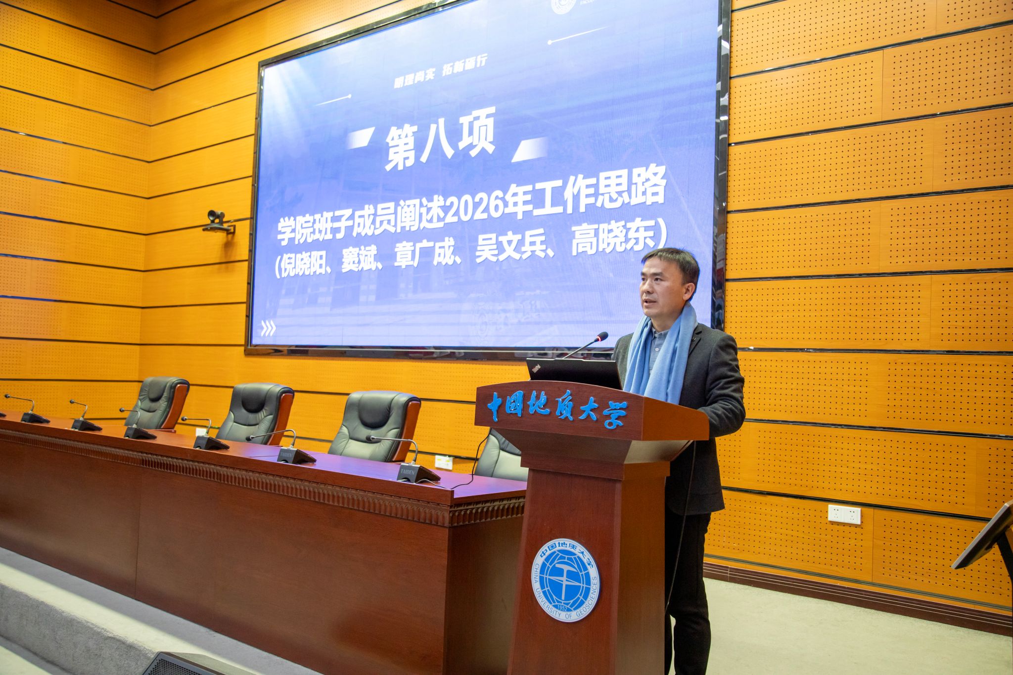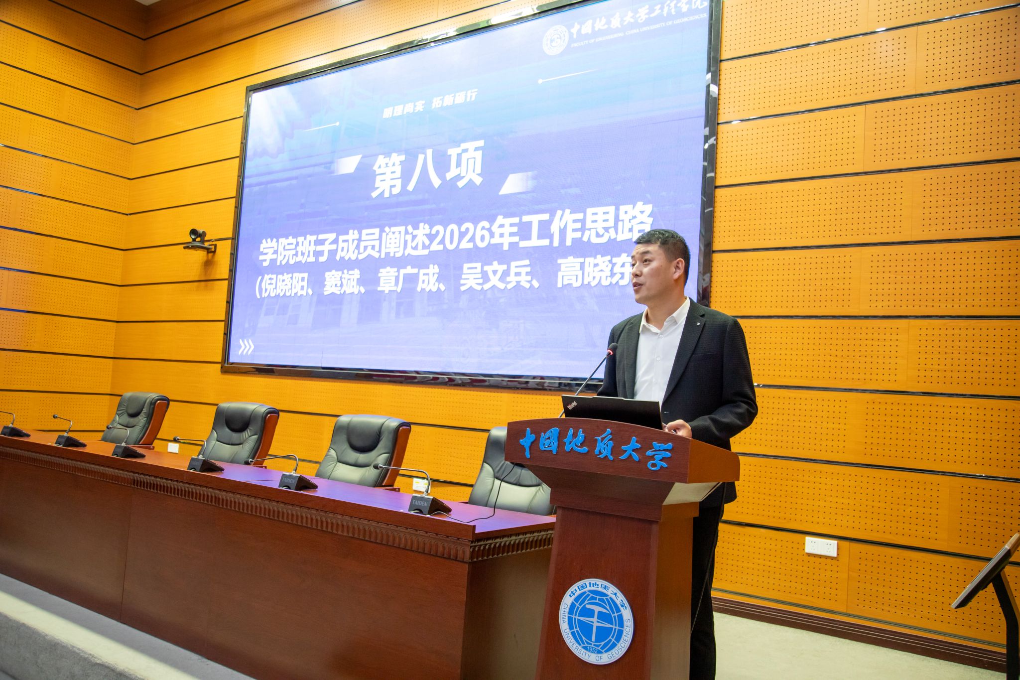 (通讯员 方长亮)2026年1月8日下午,Beat365中文官方网站第六届教职工大会第二次会议暨第六届工会会员大会第二次会议在南望山校区东区教学综合楼A0113会议室隆重召开。党委书记杨昌锐同志主持大会,全院教职工齐聚一堂,围绕“明理尚实 拓新砺行——为建设地质工程与人居安全领域特色鲜明、享誉国际的一流研究型学院而接续奋斗”主题共绘发展蓝图,圆满完成各项议程。