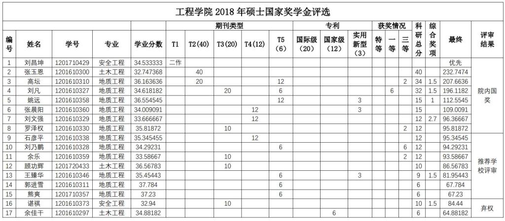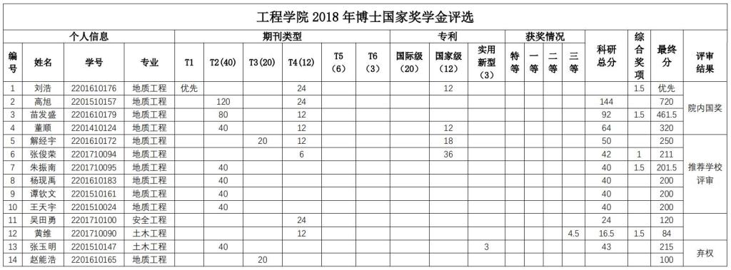 经个人申报,学院研究生国家奖学金评审委员会秘书处资格审查,学院研究生国家奖学金评审委员会于2018年9月29日下午组织通过资格审查的申报者(其中博士研究生14人,硕士研究生17人)进行答辩评审,学院研究生国家奖学金监审委员会全程监督。会议确定了刘昌坤等8名硕士研究生,刘浩等4名博士研究生为Beat365中文官方网站2018 年研究生国奖学金候选人。现将Beat365中文官方网站 2018 年国家奖学金候选人公示(见下表)。
