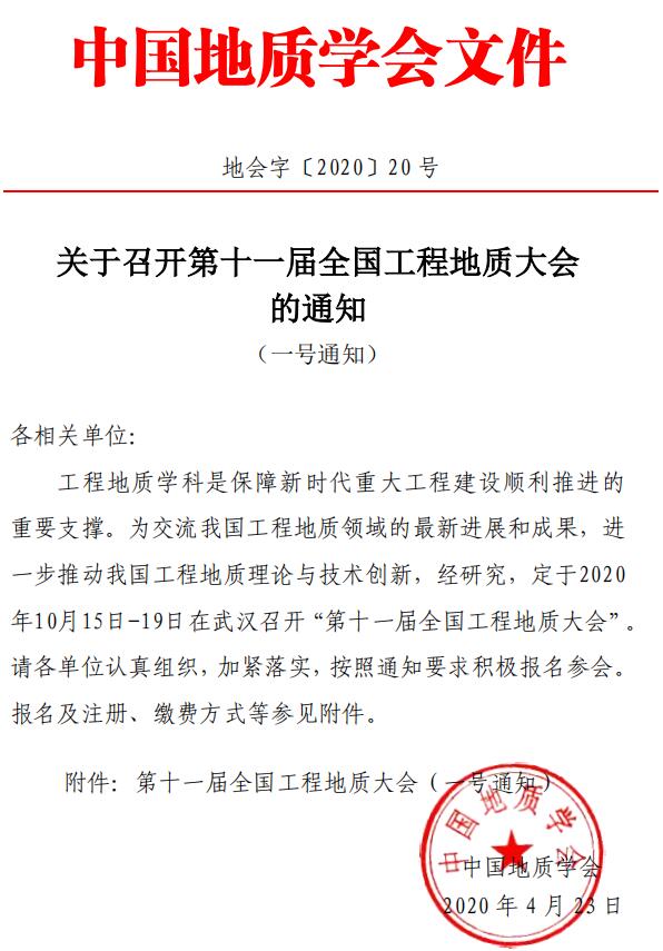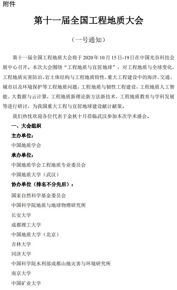 关于召开第十一届全国工程地质大会的通知(一号通知)