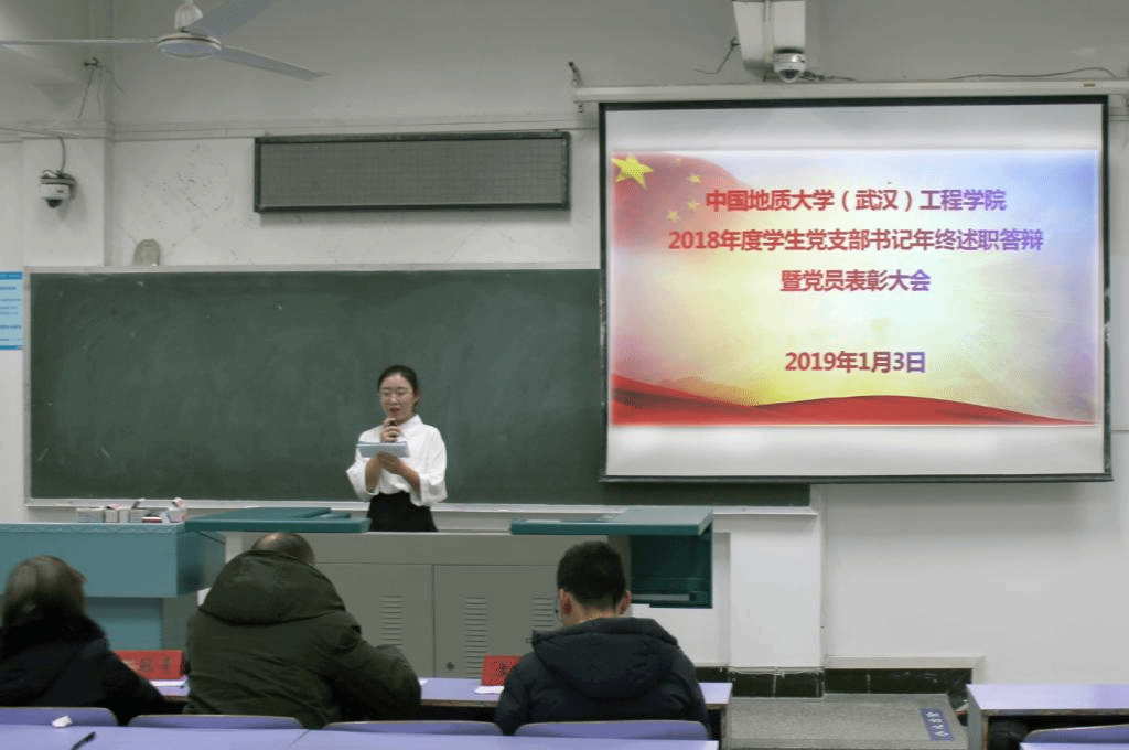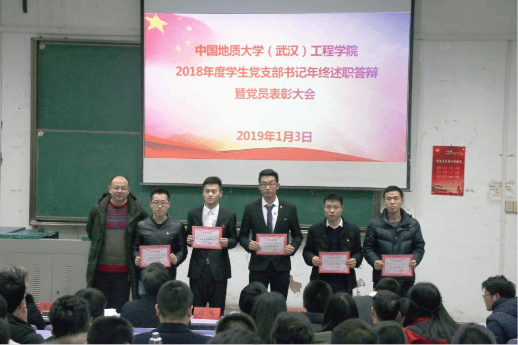 2019年1月3日晚,Beat365中文官方网站2018年度学生党支部书记年终述职答辩暨党员表彰大会在教三楼201和207教室成功举行。