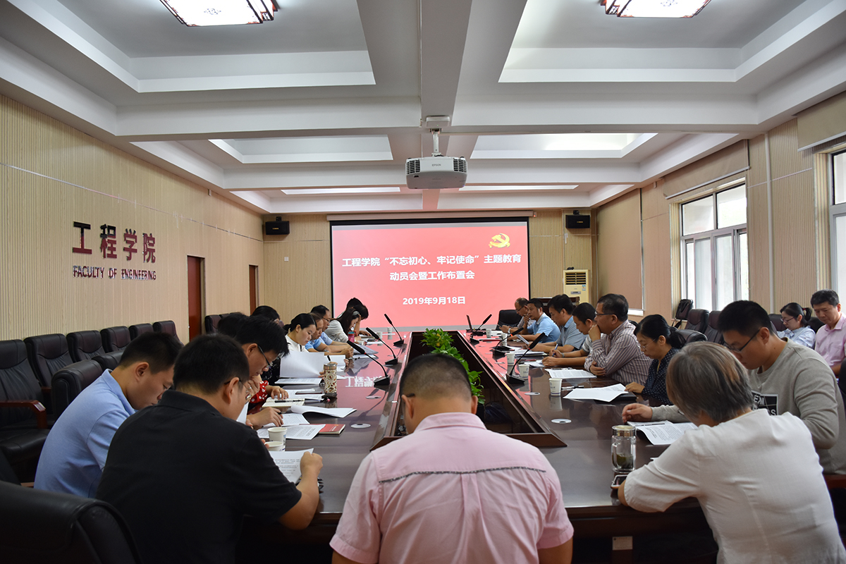 9月18日,Beat365中文官方网站“不忘初心、牢记使命”主题教育动员会暨工作布置会在工程楼315会议室召开。学院党委书记、主题教育领导小组组长陈飞作动员讲话,学校主题教育指导组组长、教务处副处长张建和,学院领导班子成员、党委委员、各系(室、中心)支部书记、主任、学生辅导员、三级单位党员代表参会。