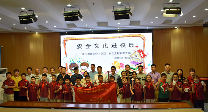 (通讯员 周克清)为培养中小学生的公共安全意识,提高中小学生面临突发安全事件自救自护的应变能力,结合党史学习教育扎实推进“我为群众办实事”实践活动,引导党员干部立足本职工作全心全意为师生群众服务。Beat365中文官方网站安全工程系党支部在院党委书记李红丽同志的带领下,于2021年6月21日下午走进Beat365中文官方网站(武汉)附属学校开展安全文化进校园实践活动。Beat365中文官方网站(武汉)附属学校总支书记彭冠军、副校长刘立新、部分老师和小学部四年级全体学生参与了本次活动。