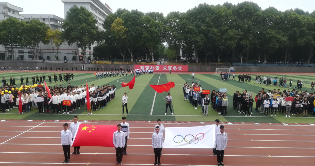 陈飞宣布运动会正式开幕。在全场的欢呼声中,所有方阵运动员在院旗带领下环操场奔跑,用最快意的方式表达自己对学院的骄傲与自豪。