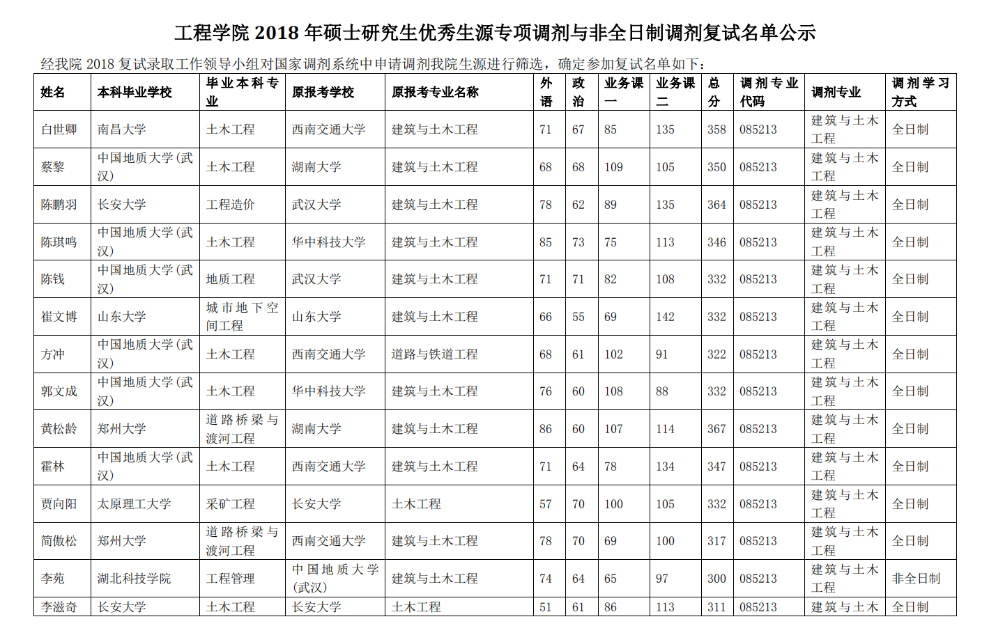 Beat365中文官方网站 2018 年硕士研究生优秀生源专项调剂与非全日制调剂复试名单公示
